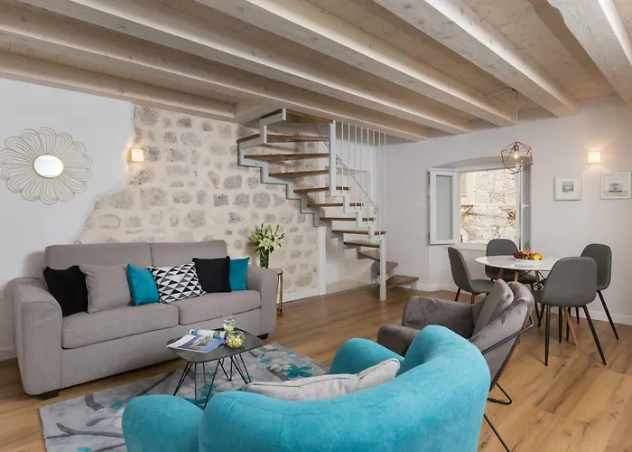 Das 2-Zimmer-Apartment Stulli 2 mit einer Fläche von 60 m^2 liegt im Zentrum von Dubrovnik. Das Apartment bietet Ausblicke auf die Berge.